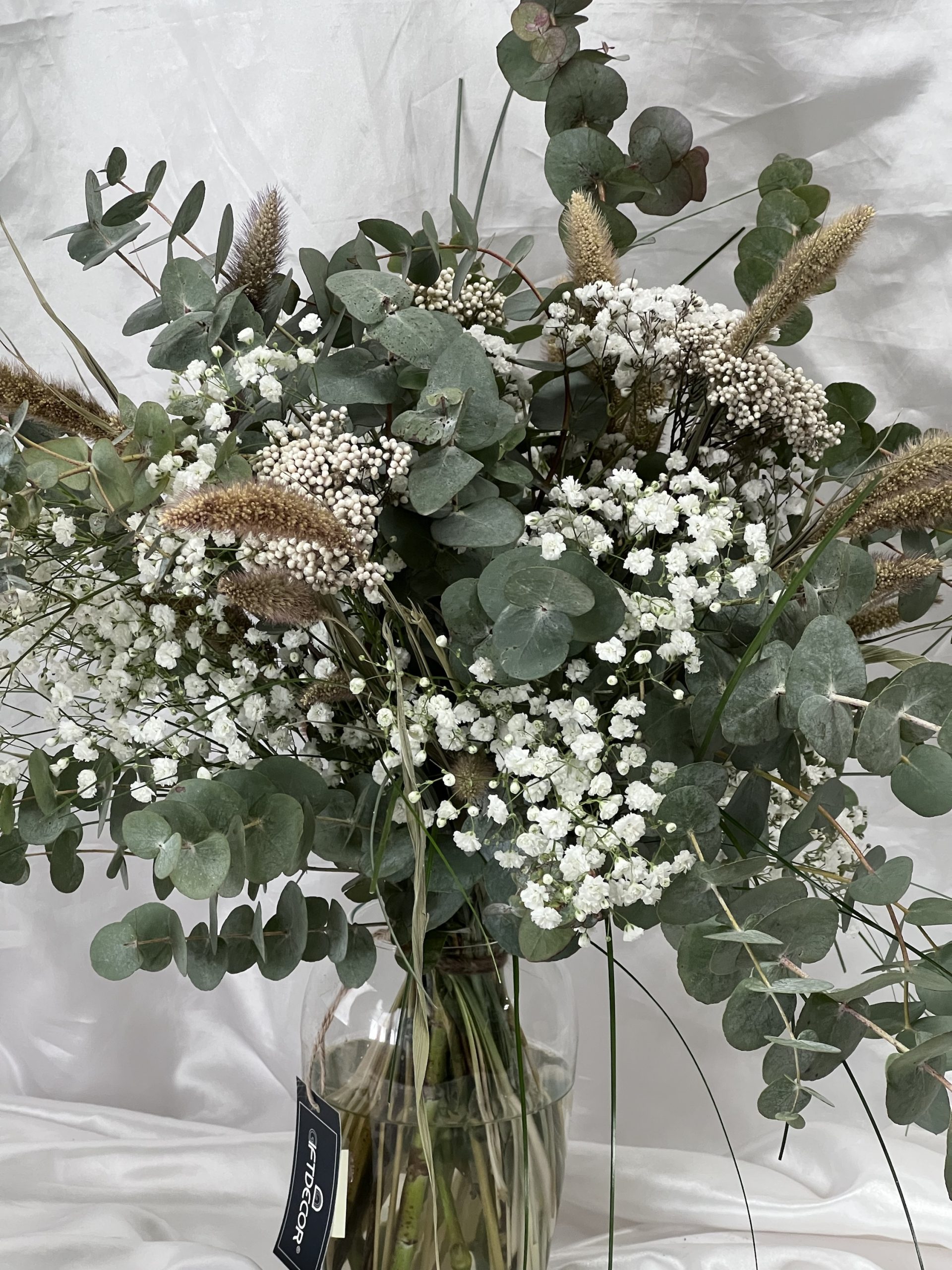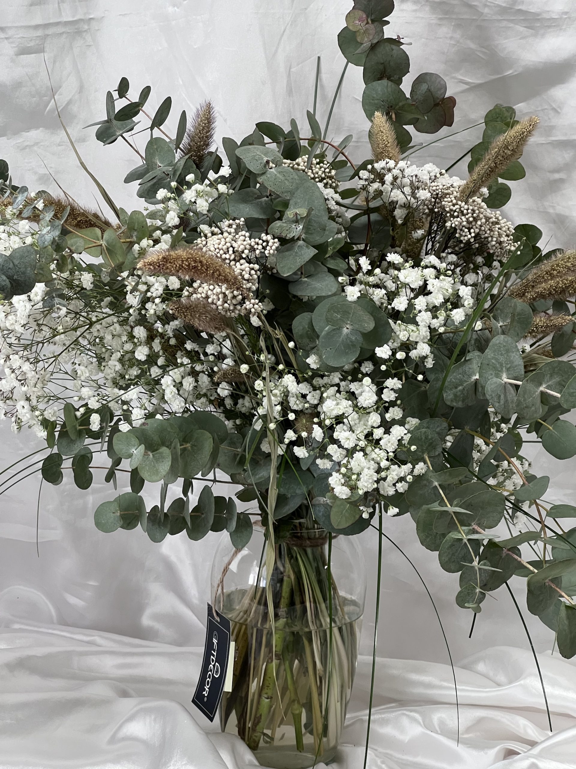Ramo tonos naturales con eucalipto, paniculata, flor de arroz etc.