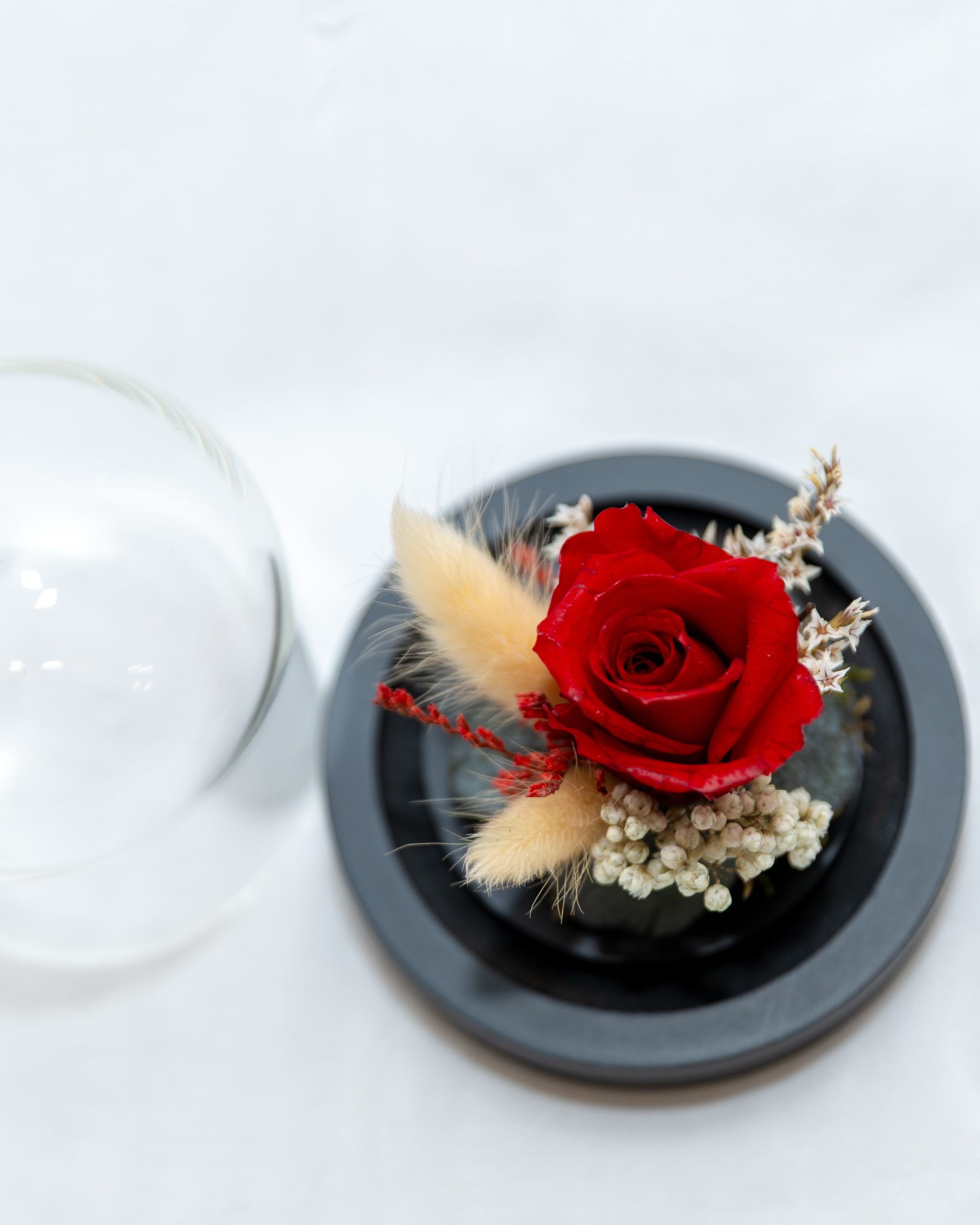 Cúpula con rosa preservada , posibilidad de variar color, rojo, rosa, blanco y amarillo
