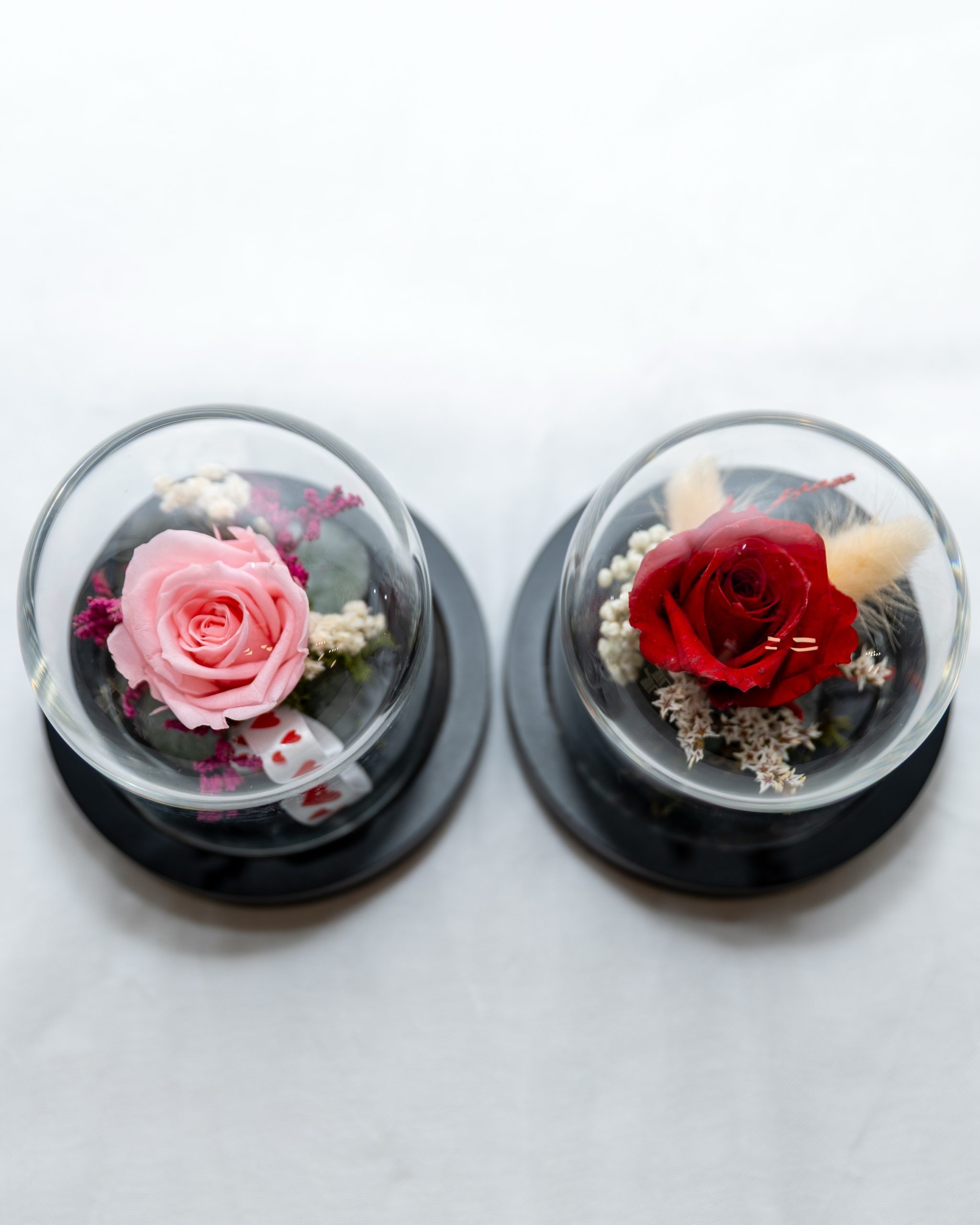cúpulas con rosa preservada, la rosas eternas que están llenas de color, nos encantan por su delicadeza y su gran belleza